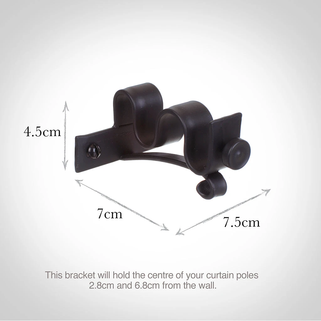 - Double brackets are generally used at either end of your pole. With a reach (depth) of 7.5cm to the front of the pole, they will fit most window settings.