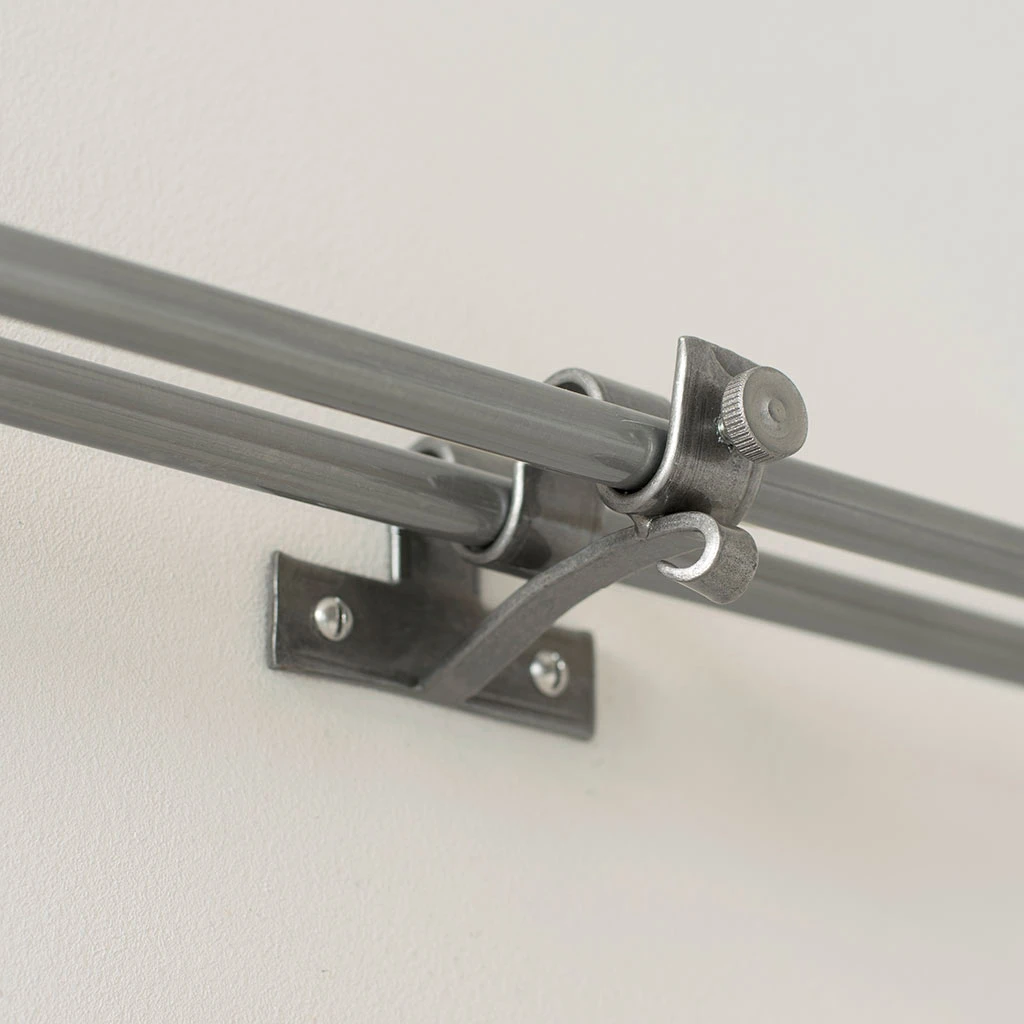 Our 12mm Double Pole Centre Brackets are the perfect companion for your forged iron curtain poles ensuring they will look fabulous for years to come in whichever room they are fitted. Hand forged from high quality steel, these double brackets allow two 12mm poles to be used at the same window so that you can hang one curtain in front of another, typicallly a sheer net or voile, or a blind hung alonside a heavier curtain.
