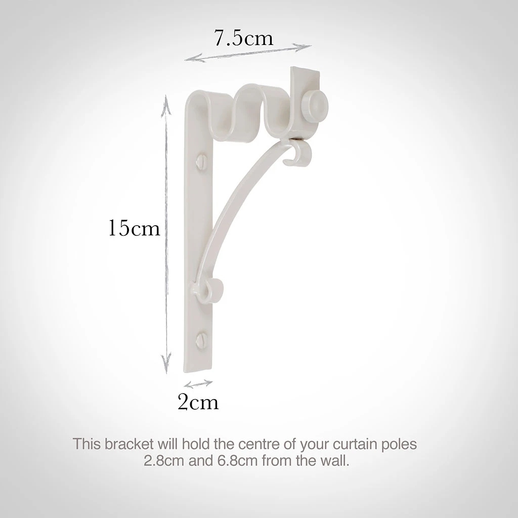 - Double brackets are generally used at either end of your pole. With a reach (depth) of 7.5cm to the front of the pole, they will fit most window settings.