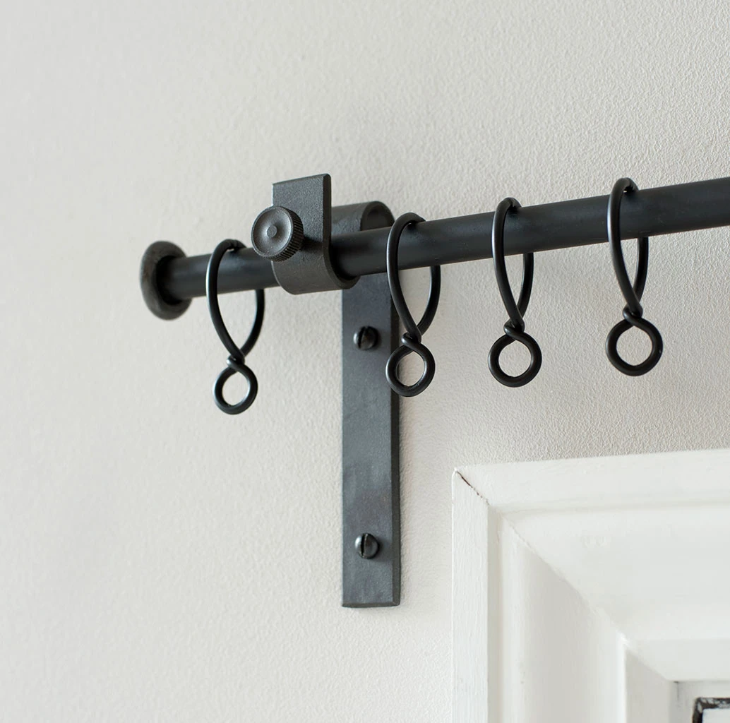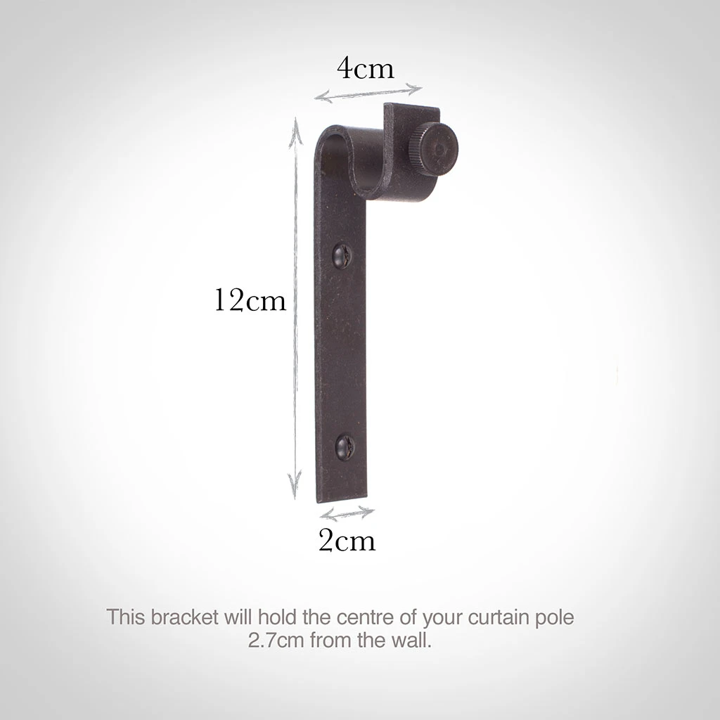 Our 12mm Chapel Standard Brackets are the perfect companion for your forged iron curtain poles ensuring they will look fabulous for years to come in whichever room they are fitted. Finished in traditional black Beeswax for a lovely soft, wrought iron look, these brackets are made from premium quality steel and are suitable for all curtains. We also make a wide range of complementary finials, rings and curtain holdbacks for you to choose from. The brackets have a decorative thumbscrew at the front to help secure your pole, and chamfered edges for an elegant finish.