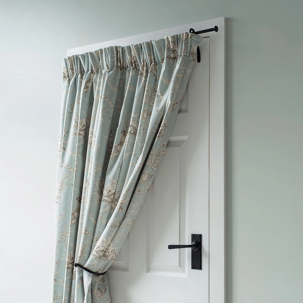 Our button ended portiere rod is designed to open and close with a door so you can hang curtains easily to keep out a draught. Hand crafted from high quality forged iron that is painted Matt Black, the portieres are 12mm thick and made to measure according to what length you require.