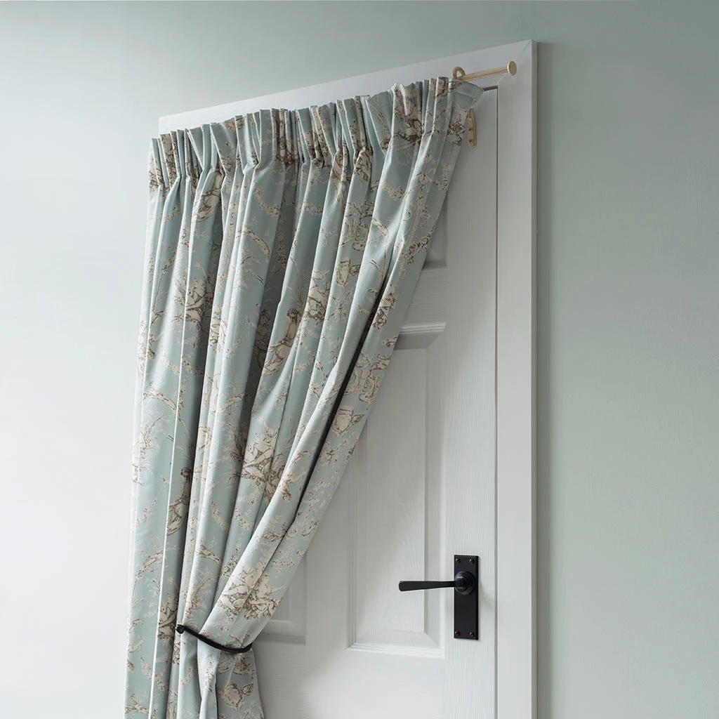 Our button ended portiere rod is designed to open and close with a door so you can hang curtains easily to keep out a draught. Hand crafted from high quality forged iron that is painted Old Ivory for a soft off-white look, the portieres are 12mm thick and made to measure according to what length you require.