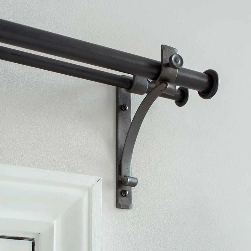 Our 20/12mm Double Pole Standard Brackets are the perfect companion for your forged iron curtain poles ensuring they will look fabulous for years to come in whichever room they are fitted. Hand forged from high quality steel, these double brackets allow you to fit a 20mm pole at the front with a 12mm pole at the back, at the same window, so that you can hang one curtain in front of another, typically for a sheer net, voile or a blind hung alongside a heavier curtain.