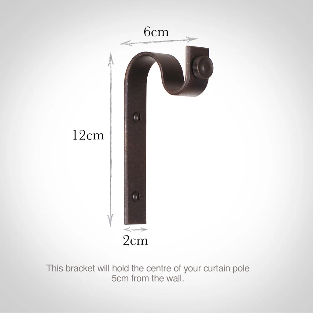 - Standard brackets are generally used at either end of your pole. With a reach (depth) of 6cm to the front of the pole, they will fit most window settings.