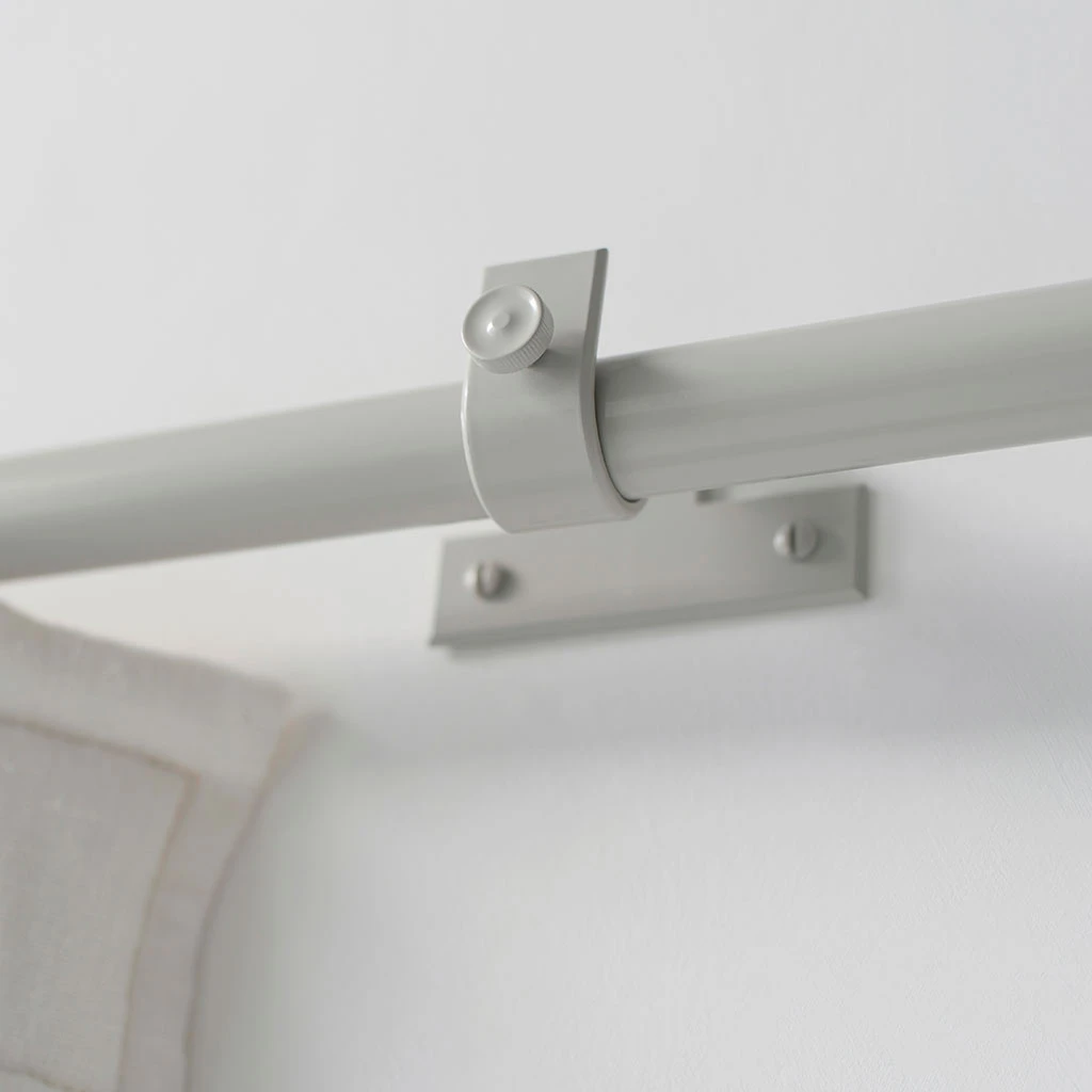 - Standard brackets are generally used at either end of your pole. With a reach (depth) of 7.6cm to the front of the pole, they will fit most window settings.