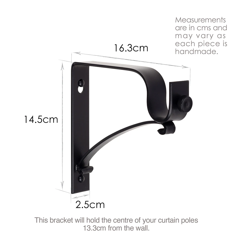 These brackets fit at either end of our 20mm forged iron curtain poles and have a decorative support arm for additional strength. All Jim Lawrence products are made using traditional metalworking techniques that have been passed down through the generations and are designed and finished to the highest standards at our Suffolk workshops. Browse our stunning collection of brass and iron curtain pole accessories, including centre and recessed brackets, rings and a wide range of finials to personalise your look.