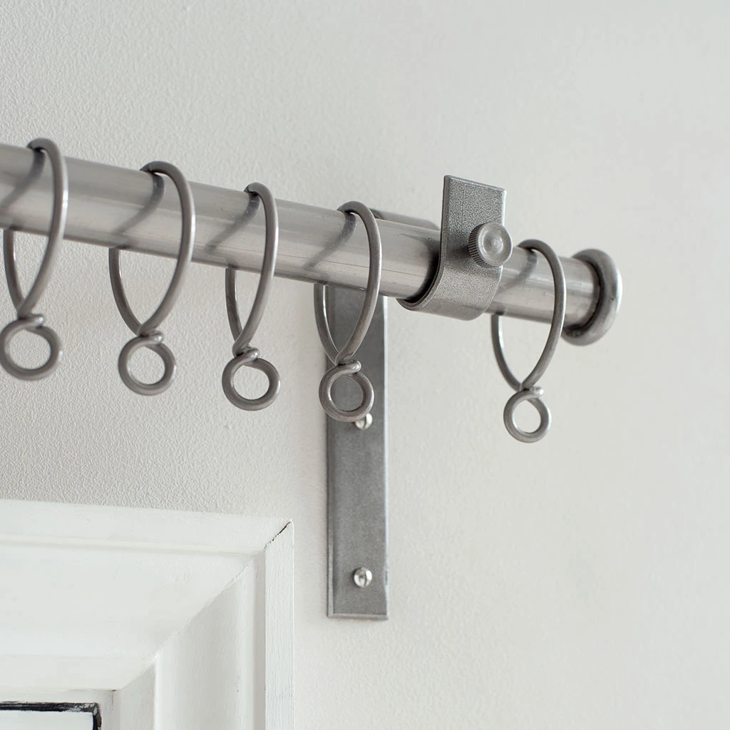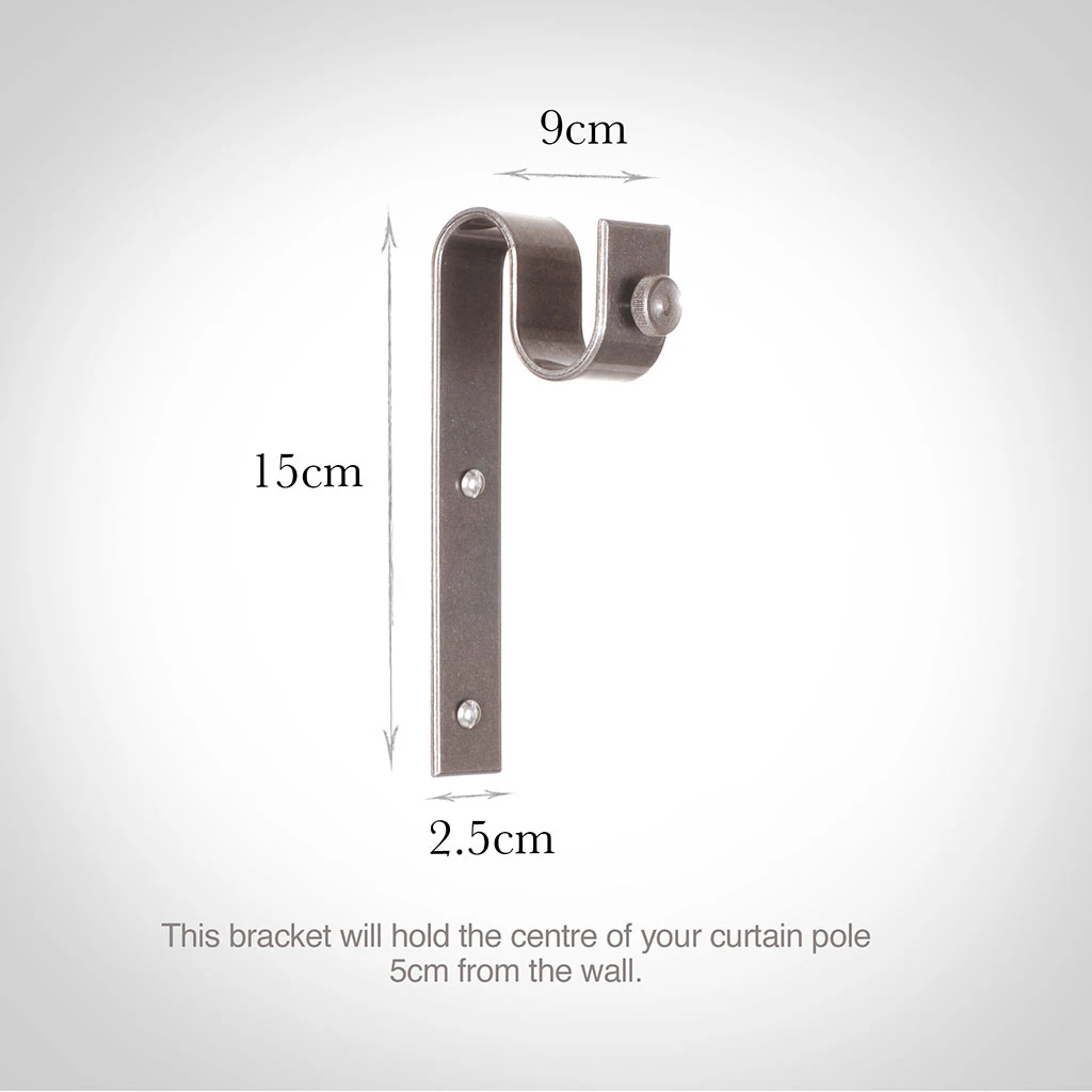 - Standard brackets are generally used at either end of your pole. With a reach (depth) of 7.6cm to the front of the pole, they will fit most window settings.