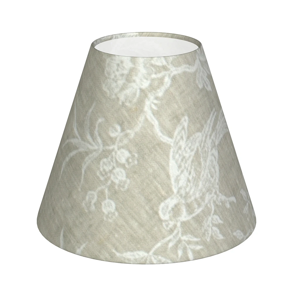 Our candle shades are made in our Suffolk workshop by our talented team of shade makers in our range of beautiful fabrics such as our Isabelle Linen, shown here in white. Please note: Due to the pattern repeat of this fabric, we cannot guarantee the product will be exactly the same as the example in the photo.