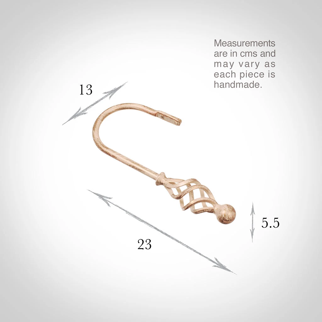 A hand forged, solid steel holdback to match our Cage & Ball finial. The holdbacks are available in two sizes: this larger size is generally recommended where there is more than one width of fabric in the curtain (unless it is a very light, unlined fabric).