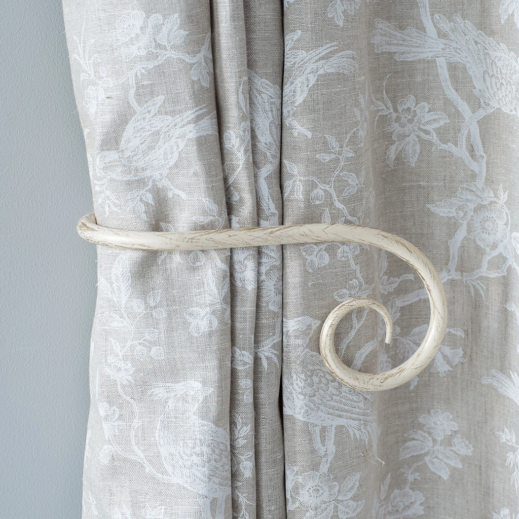 This elegant, hand forged holdback is available in a choice of finishes to match our curtain pole selection.