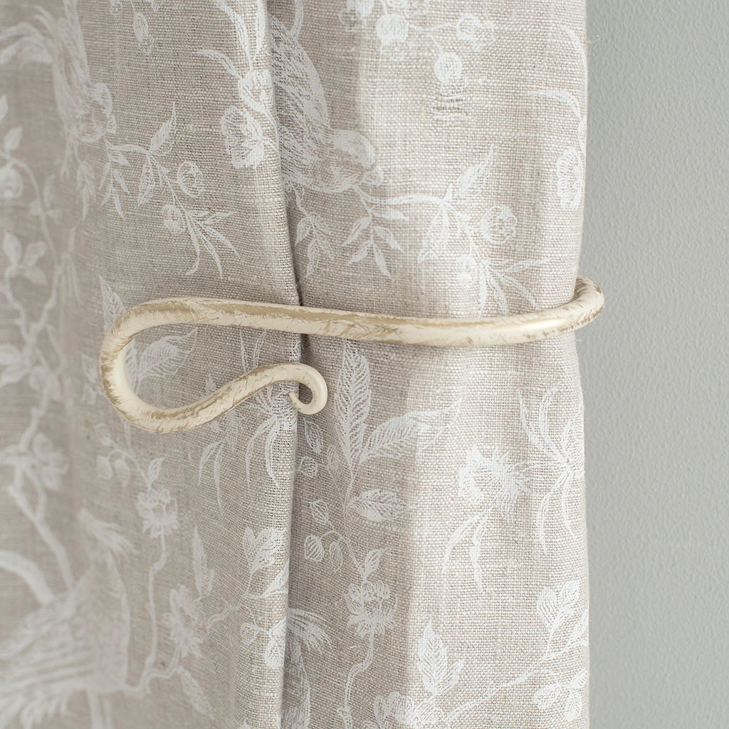 A hand forged, solid steel holdback to match our Shepherd’s Crook finial. The holdbacks are available in two sizes: this smaller holdback is generally recommended where there is only one width of fabric in the curtain (or more if it is a very light, unlined fabric).